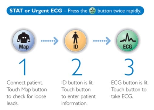 To take an ECG machine, it is as easy as 3 different colours with light-guiding buttons.