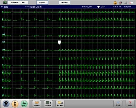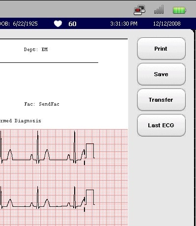 Patients that have momentary arrhythmias can be captured and recorded. It is also able to disclosure stores up to five minutes of data for all 12 leads in memory, all data that can then be used to create an ECG report retrospectively, any ten seconds can be selected and used.
