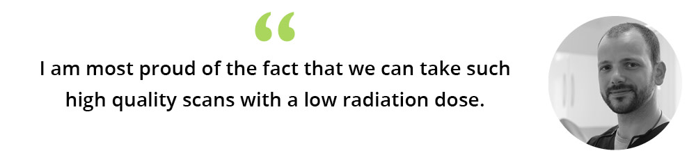 “I am most proud of the fact that we can take such high quality scans with a low radiation dose. Making the decision to invest in a CBCT is made all the easier with the assurance that you can see all the relevant anatomical structures at a fraction of the radiation dose of a traditional CT. For my work with dental implants and oral surgery, this has been invaluable.”
