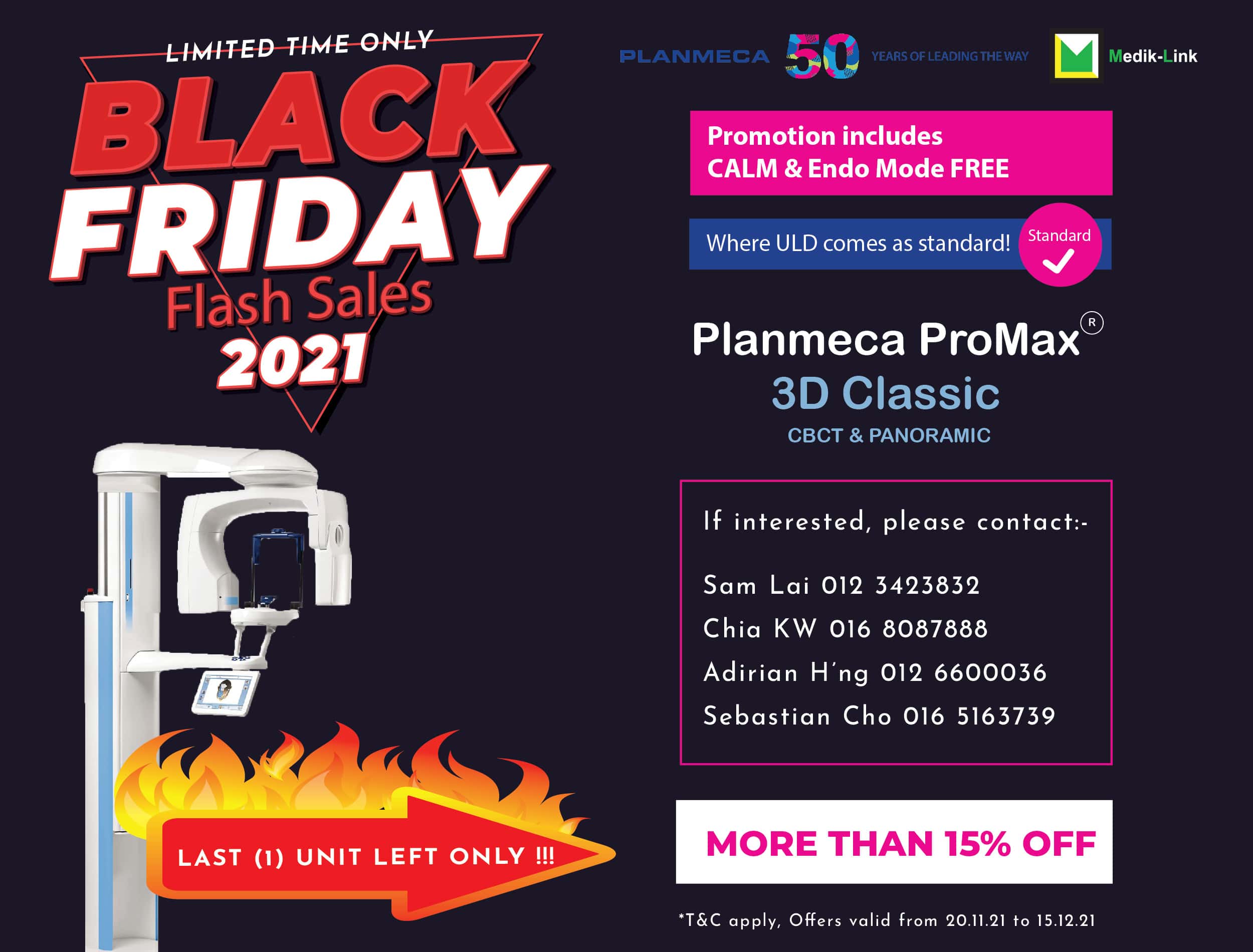 Last but not least, in conjunction with Black Friday Flash Sales, we will be providing a device super promotions offer with more than 15% discount for purchases from now until 15th December 2021. Our Planmeca ProMax® 3D Classic unit covers the entire dentition – making it an excellent option for full arch dental 3D imaging needs. Planmeca ProMax® 3D Classic provides a clear view of the mandible and maxilla, as the unit’s imaging sensor covers the entire dentition.