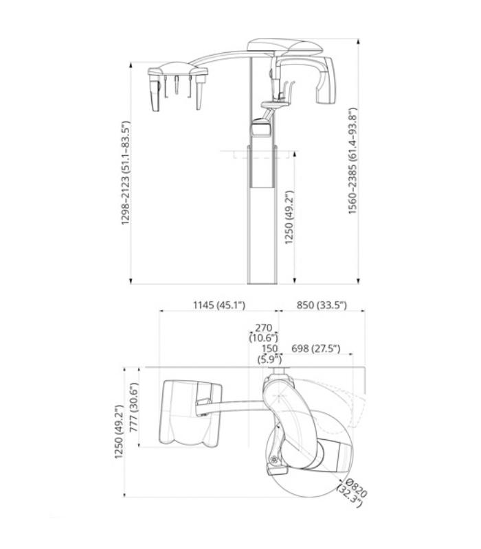 Three-joint (SCARA3) model for all imaging needs: panoramic, true extraoral bitewing, TMJ, sinus, and 2D tomography imaging.