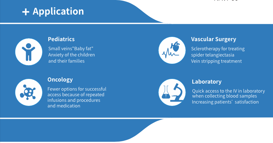 Equipped with multiple colour modes, the NAVI-60 delivers reliable vein detection across diverse skin types, including patients with challenging vein detection, such as children and elderly individuals. Its ergonomic design and lightweight build make it a practical portable vein solution across a variety of clinical settings.