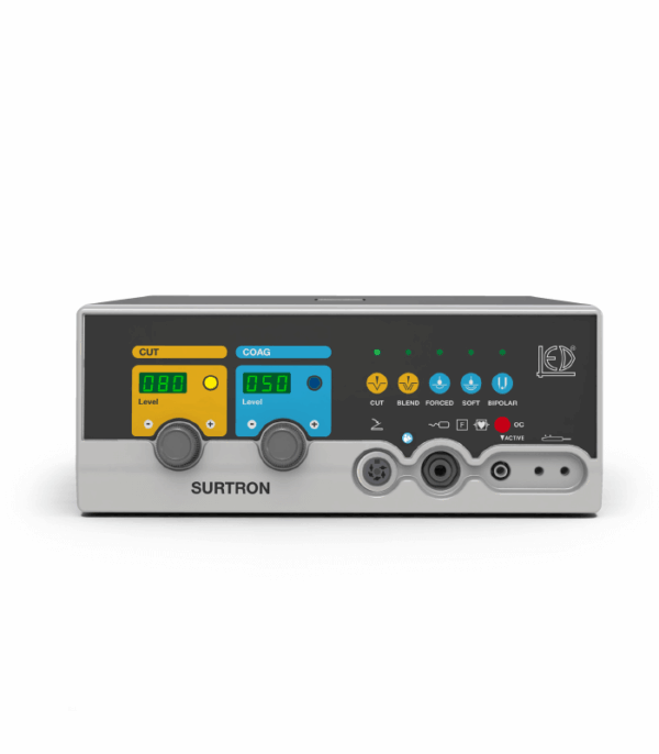 SURTRON 160, through its performance, allows pure CUT, cut-coagulation BLEND, superficial coagulation FORCED COAG, deep coagulation in absence of necrosis SOFT COAG and, with a special adapter, BIPOLAR coagulation.