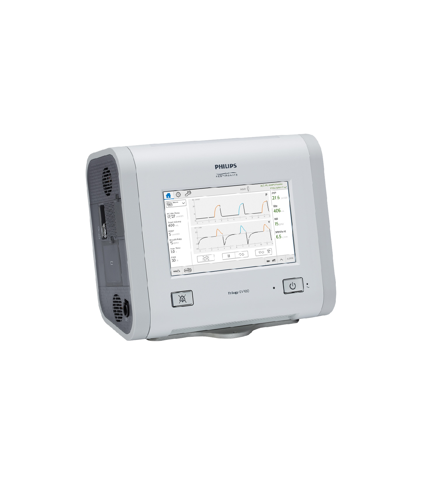 Trilogy EV300 is user-friendly but doesn’t compromise on the advanced features of the innovative Trilogy ventilator family technology. Its advanced respiratory monitoring capabilities are designed to help you optimize your patients’ therapy. Trilogy EV300 provides noninvasive (NIV) and invasive (IV) ventilation for a wide range of adult and pediatric patients. Volume and pressure modes, AVAPS-AE, Dynamic Lung Parameters and alarms of every parameter allow for adaptable care and optional SpO₂ and EtCO₂ monitoring. Flexibility of circuits enables Trilogy EV300 to be used in a wide range of patients, from infants 2.5kg to adults.